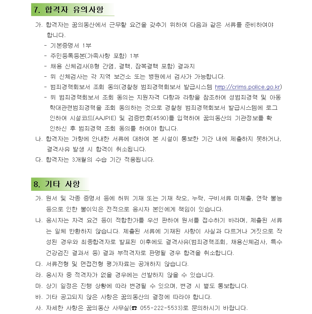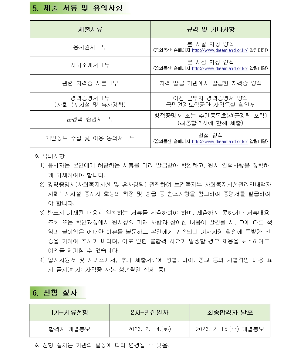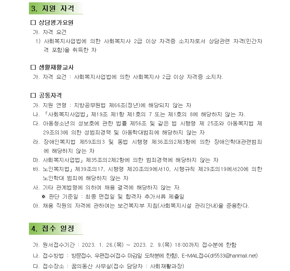 <공고번호:꿈23-3호> 직원(상담평가요원, 생활재활교사) 채용 공고