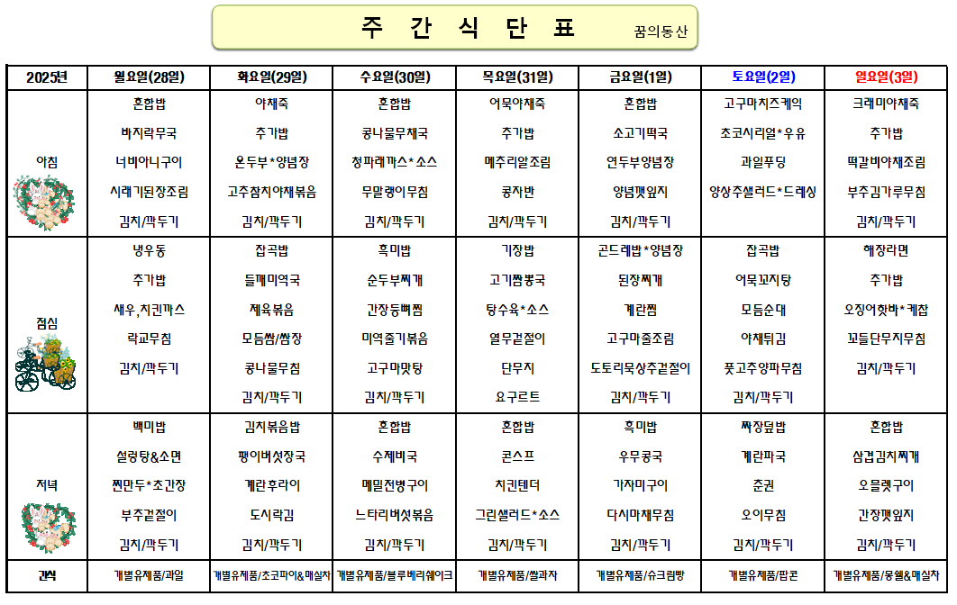 식단표 2025.7.28-8.3